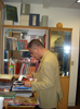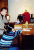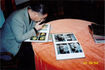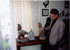 ¤û§J«ä2005¦~¦b¬ü°êÖº¨¦¦¬Âîa®a¤¤Å³½à»OÆW¤ìÀJÃÀ³N®a¦¶»Êªº§@«~¡C Niu Kesi viewing the private collection of wooden carving by Tai Wan carving artist Chu Ming, 2005, Silicon Valley. |