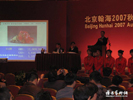 2007¦~10¤ë´°·×¬ã¨s°|¼ÔÀA¸Ö°|ªø¡]¥k¡^¦b¬ü°ê¤û§J«äÃÀ³NÀ]°µ¾Ç³N³ø§i¡C Fan Jinshi, right the director of Dunhuang Acadmy visiting Narx Gallery , Oct.2007. |