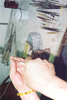 ¤û§J«ä¦b¬ü°ê×§ï¥ÛÀJ§@«~¡C Niu Kesi is improving stone carving in Narx Gallery. |